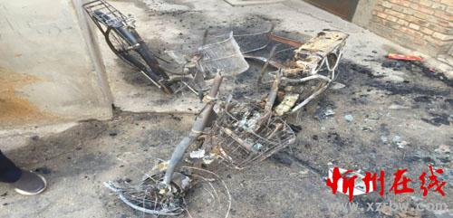 被燒毀的自行車和電動(dòng)車