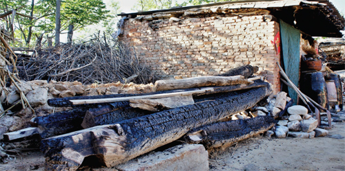 被大火燒毀的房檁、房椽(劉捷 攝)