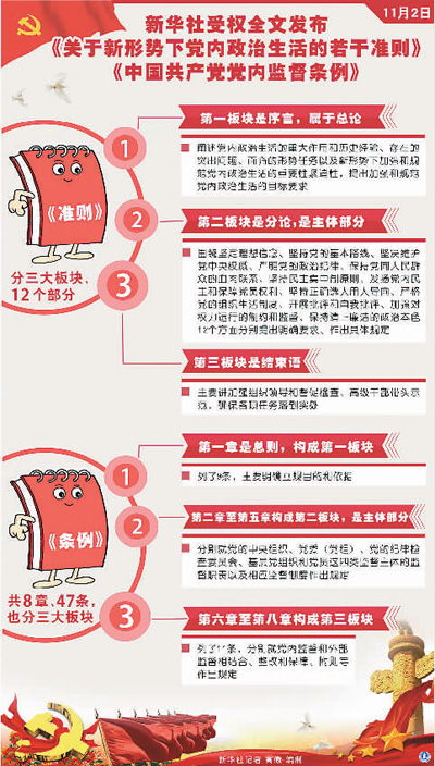 黨的十八屆六中全會審議通過的《關(guān)于新形勢下黨內(nèi)政治生活的若干準則》和《中國共產(chǎn)黨黨內(nèi)監(jiān)督條例》,是新形勢下加強和規(guī)范黨內(nèi)政治生活、加強黨內(nèi)監(jiān)督的綱領(lǐng)性文獻,是堅持思想建黨和制度治黨相結(jié)合、推進全面從嚴治黨形成的新制度安排,是對馬克思主義建黨理論和實踐的創(chuàng)新發(fā)展。
