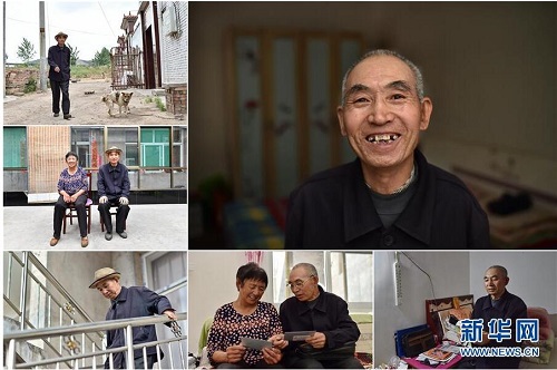 牛慶山,男,1949年出生,山西省長治市潞城區(qū)西坡底村人,1969年參軍,1973年退伍回村,以種地為生。2015年,牛慶山因患重病住院,家庭陷入貧困。在當(dāng)?shù)卣膸椭拢暾埩说捅?、大病醫(yī)療補(bǔ)貼、金融扶貧補(bǔ)貼,生活有了保障。 右上:牛慶山肖像;左上:牛慶山走在村里;左中:牛慶山和老伴在新房前合影;左下:牛慶山走下新房的樓梯;下中:牛慶山和老伴在翻看老照片;下右:牛慶山在新房的臥室里(拼版照片,6月12日攝)。 地處晉東南的山西省長治市,位于由太行山、太岳山環(huán)繞而成的上黨盆地中。在群山中、崖壁上,許多村莊自然條件惡劣,基礎(chǔ)設(shè)施落后,脫貧致富是大山深處人們的迫切心愿。 近年來,一場場脫貧攻堅(jiān)戰(zhàn),在一個(gè)個(gè)深山村打響。政府全力探索脫貧路徑的同時(shí),山區(qū)百姓因地制宜,靠自己的雙手和智慧走上致富路,交出了一份扎實(shí)的脫貧答卷。 記者在太行山、太岳山一路尋訪,記錄下多位70歲老人的生活。這些共和國的同齡人,親歷了山鄉(xiāng)的巨變,見證著長治山區(qū)脫貧攻堅(jiān)偉大工程的一步步推進(jìn)。 新華社記者 曹陽 攝