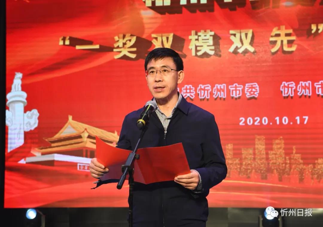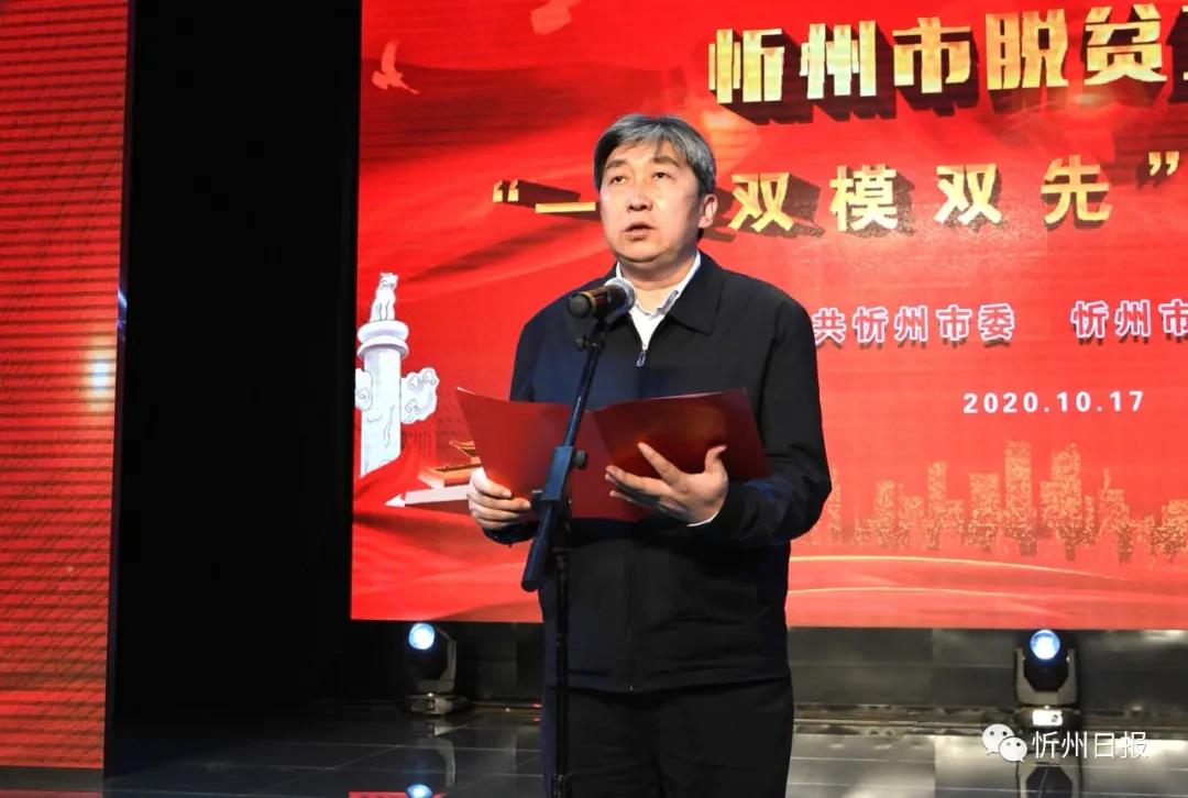 秦書(shū)義宣讀《中共忻州市委忻州市人民政府〈關(guān)于表彰2020年忻州市脫貧攻堅(jiān)“一獎(jiǎng)雙模雙先”的決定〉》。劉紀(jì)森