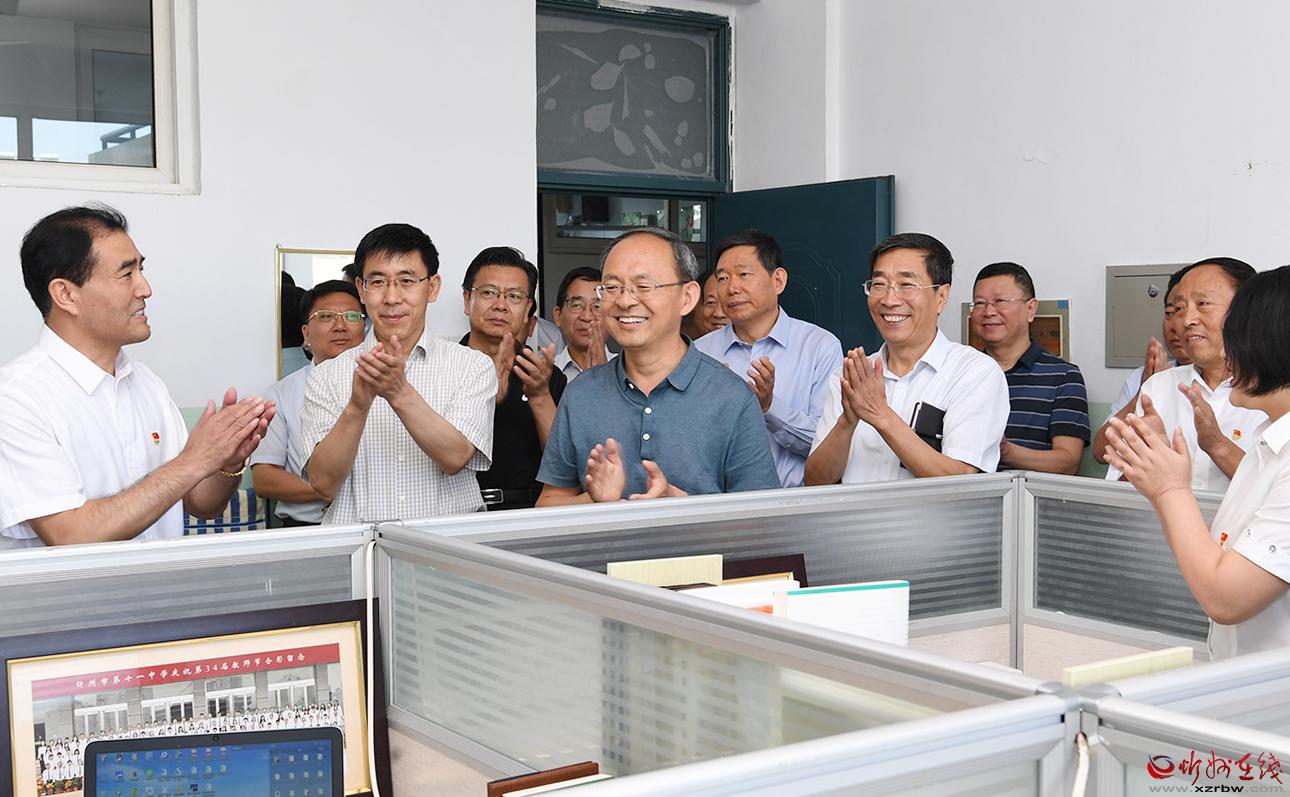 每到一處,朱曉東都向教師們致以節(jié)日問候。長征小學西校區(qū)是一所高標準規(guī)劃、高水平建設的新建學校,今年秋季學期投入使用。朱曉東察看電子圖書閱覽等教學新設施,了解學校開設的書法、歌唱、手工、足球、乒乓球、跆拳道、機器人組裝等特色教育課程,隨機檢查學生飲用水機具,向從基層選拔聘用的優(yōu)秀教師代表贈送書籍,勉勵大家珍惜崗位,肩負起時代賦予的重任,全心全意培養(yǎng)好人才。具有40多年歷史的忻州六中辦學底蘊厚重,近年來與時俱進提升教學能力。朱曉東實地了解學校發(fā)展情況后,一一為教師代表獻上鮮花,感謝大家辛勤付出,希望學校越辦越好,讓孩子們在學校有更多收獲。忻州高級中學教學設施先進,教師隊伍素質高、經(jīng)驗豐富,今年學校畢業(yè)班高考再次取得好成績。朱曉東詳細了解學校歷史和往屆學生成就,鼓勵教師們放長眼光,對照更高標準繼續(xù)努力,為忻州增光添彩。