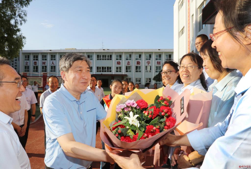 朱曉東在慰問時強調,教師崗位光榮、使命重大,是決定學校辦學質量的關鍵。忻州教育事業(yè)一年一個新臺階、一年一個新變化,與廣大教師的努力付出、辛勤工作息息相關。教師的工作是為地方、為社會、為國家打基礎、立長遠的戰(zhàn)略性工作,各級各部門要堅決貫徹落實黨的教育方針,尊重教師、呵護教師、全力保障教師。教師要全面落實立德樹人根本任務,尊重教育規(guī)律和人才成長規(guī)律,把社會主義核心價值觀融入教育全過程,促進孩子們健康快樂地成長。要讓孩子們包括文化知識在內全面發(fā)展,像澆灌苗木一樣不斷培養(yǎng)塑造學生的心靈,讓孩子們有愛心,愛家人、愛社會、愛祖國,讓孩子們在知識儲備、心理健康、寬廣胸懷、廣闊視野上打好基礎,讓忻州的學子在步入社會后,個個綜合素質優(yōu)越,潛力長遠、底蘊深厚,成為一個個為社會作貢獻的人才。希望廣大教師根據(jù)自身實踐,結合忻州實際,在教學、教育方面提出好的意見和建議,大家凝聚智慧,共同努力把忻州的教育質量、教育事業(yè)辦得更加讓人民滿意,更加出彩。