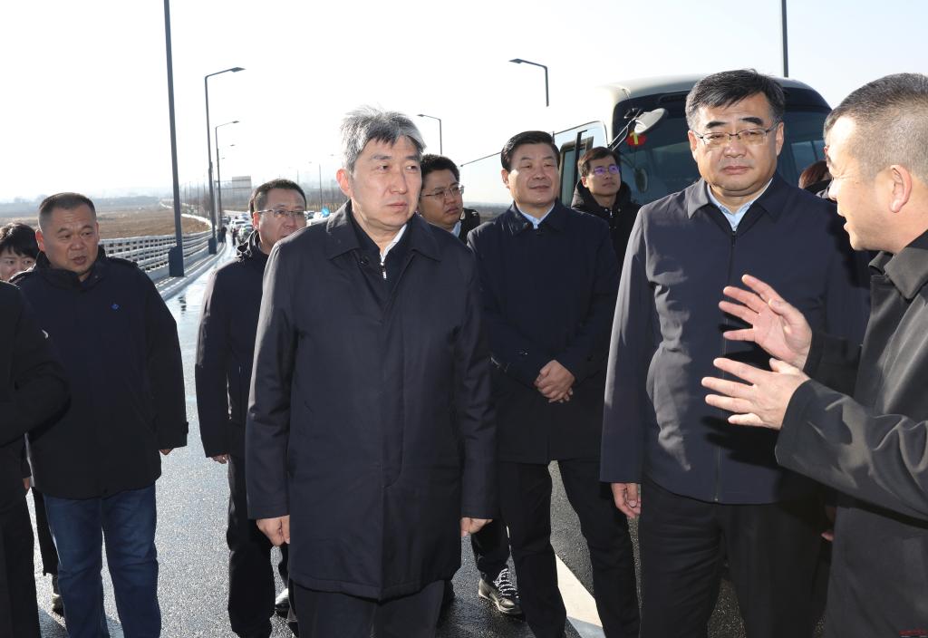 在云中河大橋調(diào)研忻奇大道項(xiàng)目建設(shè)情況。范濤 攝