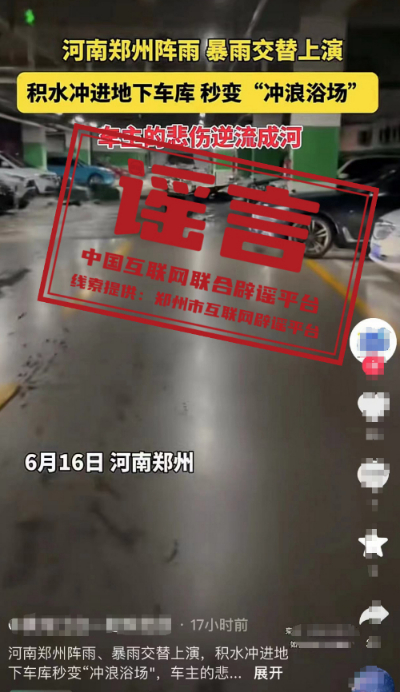 謠言:河南鄭州積水沖進(jìn)地下車(chē)庫(kù)?
