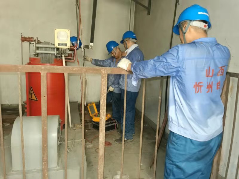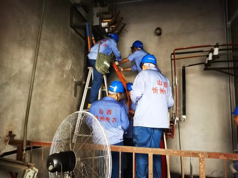 7月27日早8時,國網(wǎng)忻州供電公司保供電小分隊9人奔赴現(xiàn)場,進入小區(qū)配電室的那一瞬間,就被眼前的場景驚到了,配電室內(nèi)地面浸水導(dǎo)致主變地基下沉、變壓器基礎(chǔ)嚴重傾斜,與之相連的高壓側(cè)設(shè)備基本損壞,母排變形、融管炸裂、觸頭損壞,目測這里的工作任務(wù)量估計得干到晚上了。