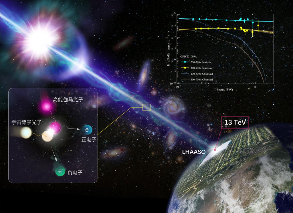 科學家利用我國高海拔宇宙線觀測站“拉索”(LHAASO),精確測量了迄今最亮伽馬暴GRB 221009A的高能輻射能譜,并據(jù)此獲得了對伽馬暴的全新認知。