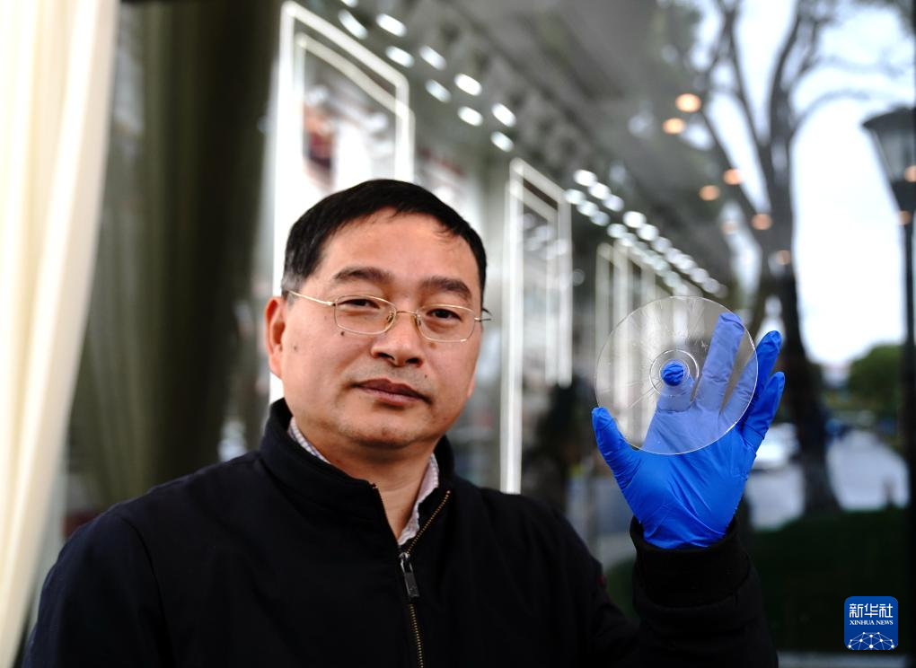 2月21日,上海光機所阮昊研究員展示“超級光盤”。新華社記者張建松 攝