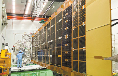 圖為銀河航天靈犀03星柔性太陽(yáng)翼展開狀態(tài)。 銀河航天供圖