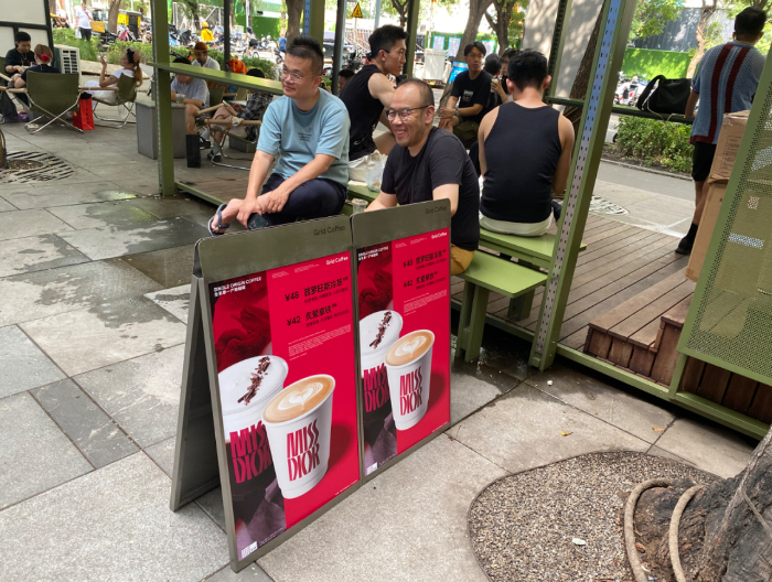 Grid Coffee與迪奧聯(lián)名咖啡吸引消費(fèi)者排隊(duì)購買。
