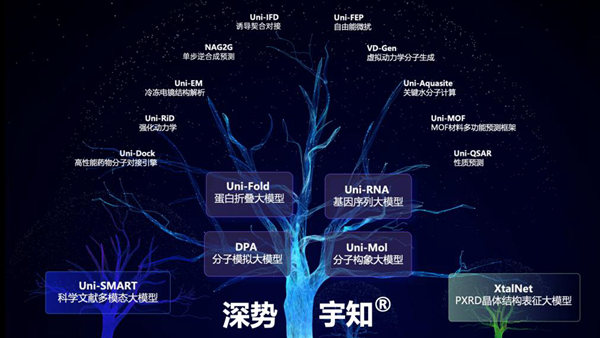 深勢(shì)科技聯(lián)合創(chuàng)始人、CEO孫偉杰介紹,近年來(lái),深勢(shì)科技與協(xié)作者們推出了DPA分子模擬大模型、Uni-Mol分子構(gòu)象大模型、Uni-Fold蛋白折疊大模型、Uni-RNA基因序列大模型、Uni-Dock高性能分子對(duì)接引擎,以及Uni-SMART科學(xué)文獻(xiàn)多模態(tài)大模型等一系列科學(xué)大模型及底層引擎。