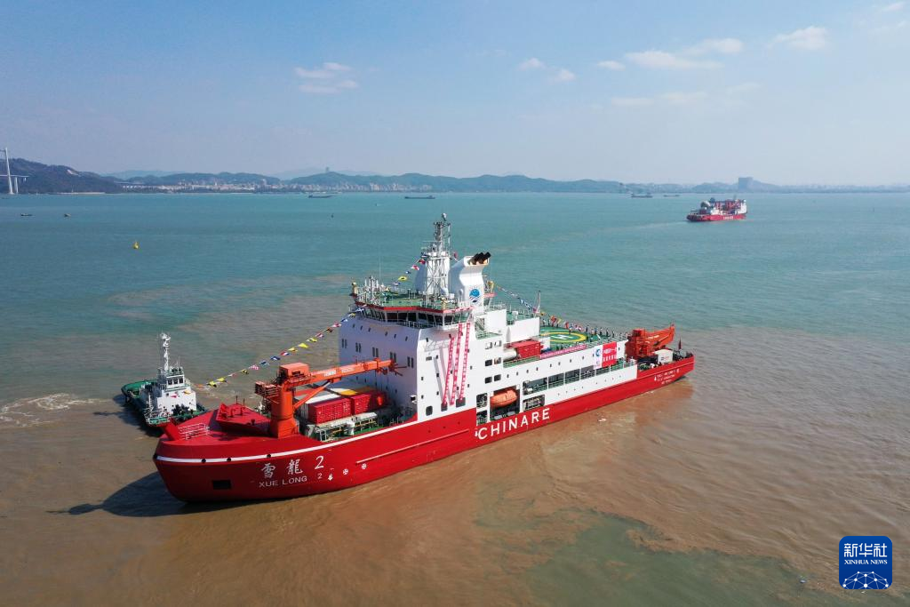 2024年11月1日,“雪龍”號和“雪龍2”號船從廣州南沙國際郵輪母港碼頭出發(fā)(無人機(jī)照片)。新華社記者 黃國保 攝