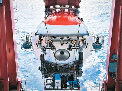 圖為9月11日,“蛟龍?zhí)枴陛d人潛水器在維嘉海山完成2024西太平洋國際航次科考最后一個潛次下潛作業(yè)。新華社記者 王聿昊攝