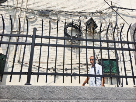 小區(qū)墻上布“蛛網(wǎng)” 住戶安全有隱患