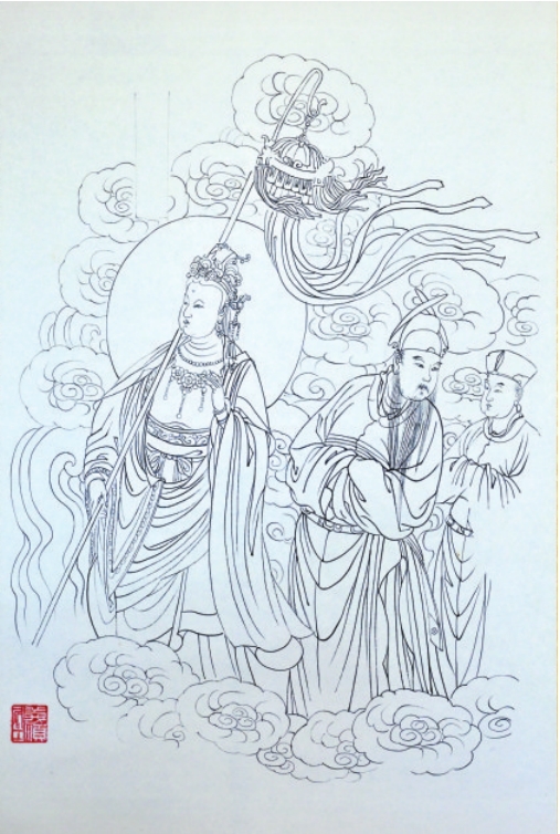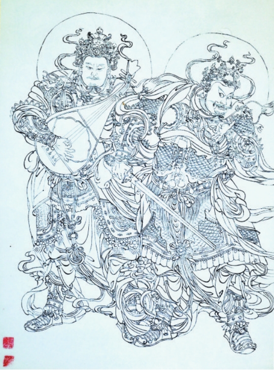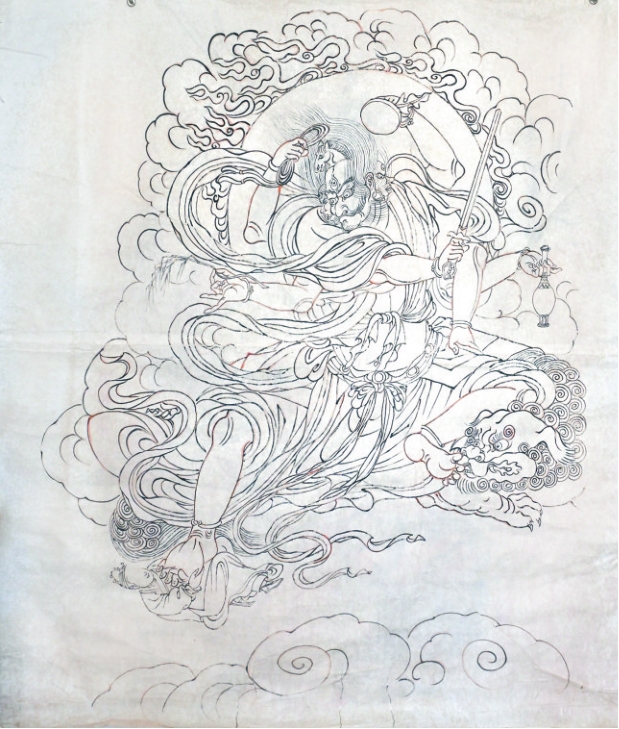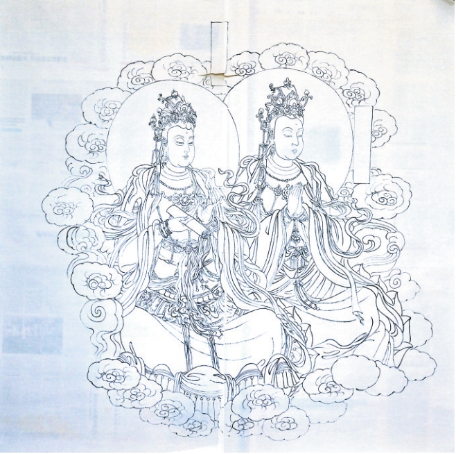 李向東臨摹公主寺壁畫(局部)白描稿