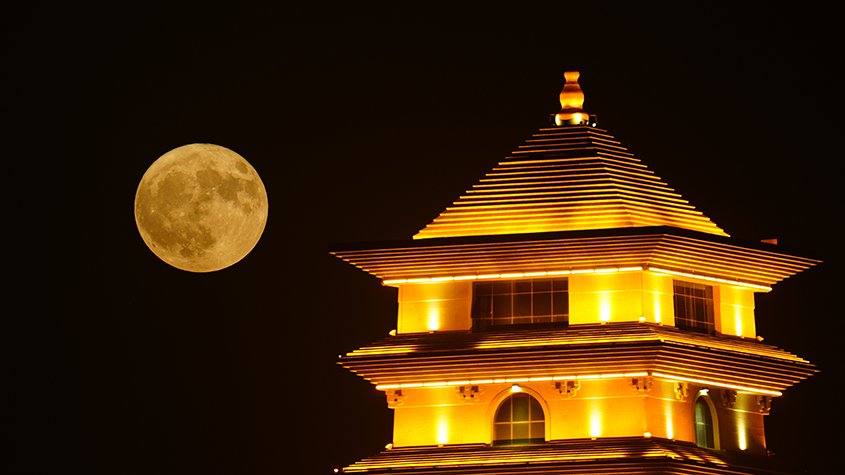 7月3日,新疆巴州,一輪滿月亮相庫爾勒市城市上空。據(jù)報道,今年7月3日的滿月,地平高度將不僅是今年滿月以來最低的,而且是2006年以來地平高度最低的滿月。