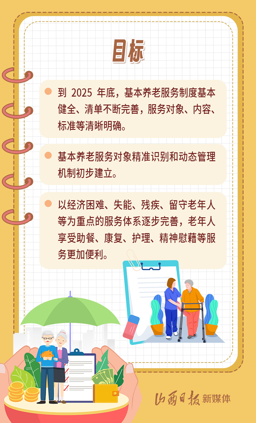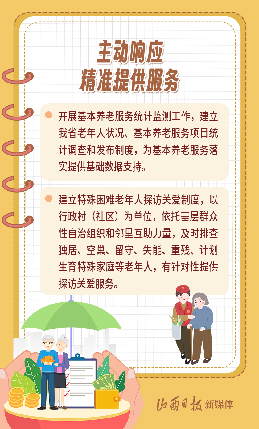 近日,我省出臺《山西省基本養(yǎng)老服務(wù)體系建設(shè)實(shí)施方案》,以積極應(yīng)對全省人口老齡化,扎實(shí)推進(jìn)基本養(yǎng)老服務(wù)體系建設(shè),切實(shí)提高基本養(yǎng)老服務(wù)的公平性、可及性,不斷增強(qiáng)老年人的獲得感、幸福感、安全感。