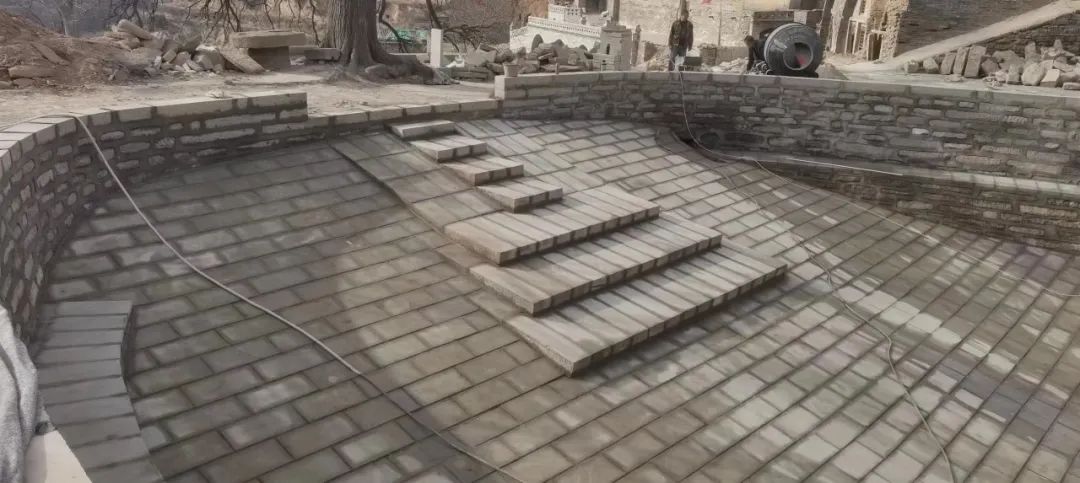 ▲正在進(jìn)行修復(fù)的泊池,這是古村落排水防洪體系中的一部分