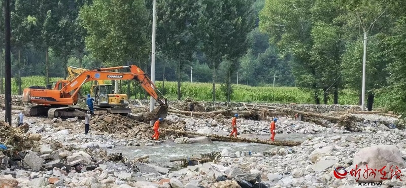 8月2日,隨著道路部分恢復(fù)通行,電力工程車終于開進(jìn)通往五臺(tái)駝梁景區(qū)的灣子溝,眼前的一切讓人觸目驚心,近兩年剛通車的柏油路損毀嚴(yán)重,路外側(cè)的護(hù)欄以擰麻花一般的姿態(tài)被擱淺在河道中間,河道里仍然湍急的水流穿行在巨大的卵石之間,摧毀的大樹、沖垮的橋梁、傾倒的電桿和混在泥濘中的電線隨處可見。