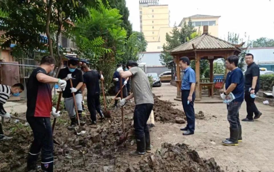 國家開發(fā)銀行鄉(xiāng)村振興部的田扶搖正和國家開發(fā)銀行的碩博志愿者隊(duì)一起,在社區(qū)清理淤泥:“大家都是利用周末時(shí)間自發(fā)前來的志愿者,有的同事還帶了家屬一起來支援災(zāi)區(qū),也都想力所能及地出一份綿薄之力。”