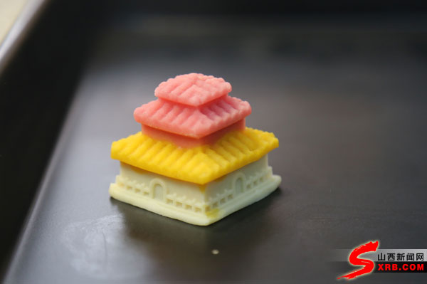 這些具有地表特色的月餅中,鐘鼓樓立體造型米月餅是今年的主打新品,由太原老式糕點(diǎn)“爐食人人馬馬”改良而成,一經(jīng)推出,便廣受好評(píng)。因眾多游客拿著它到晉祠鐘鼓樓前打卡,讓這款月餅火速“出圈”。 “這兩年我一直在嘗試文創(chuàng)月餅,去年是在‘爐食人人馬馬’上彩繪古建圖案,今年采用套色,且做了古建模具,效率更高,出來的成品也更精致更美觀?!崩铊唇榻B,今年出品的月餅不僅外形好看,烤制后也酥而不松、甜而不膩、香甜可口、回味無窮。