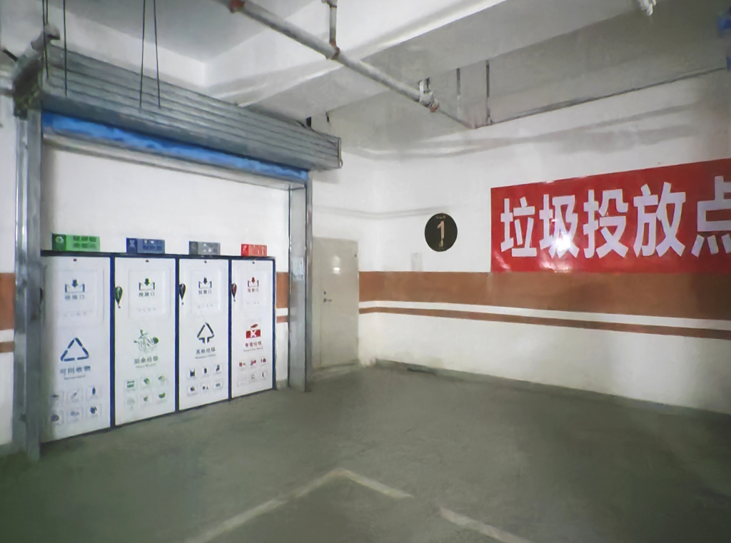 樹華園小區(qū)里沒有地面垃圾桶,只在一些日常人流密集區(qū)域設(shè)置有果皮箱和垃圾回收機(jī)。小區(qū)共有36棟住宅樓,按照每三到五棟樓為一個(gè)組團(tuán),在地下停車場(chǎng)集中設(shè)置了垃圾分類投放點(diǎn)。