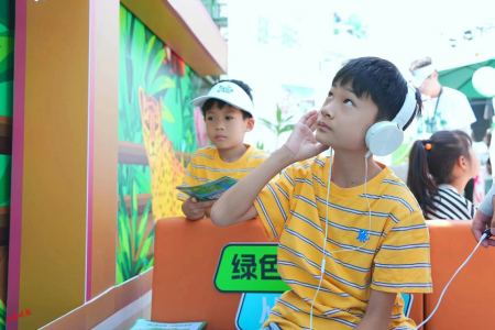 “有啄木鳥(niǎo)、有青蛙,剩下的我聽(tīng)不出來(lái)……”在“萬(wàn)物有聲”游戲環(huán)節(jié),小朋友認(rèn)真地和環(huán)保志愿者說(shuō)。在這個(gè)環(huán)節(jié),參與者佩戴耳機(jī)后,可以根據(jù)聽(tīng)到的聲音猜動(dòng)物的名稱。各種動(dòng)物的聲音,著實(shí)吸引了不少小朋友的參與,有的小朋友還模仿發(fā)出聲音的動(dòng)物形象,惟妙惟肖,讓現(xiàn)場(chǎng)不少人笑出聲來(lái)。
