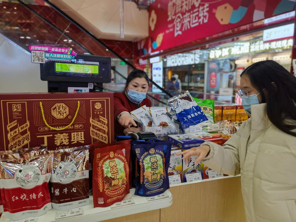 顧客在南京路步行街的第一食品商店購買年貨。新華社記者 陳愛平 攝