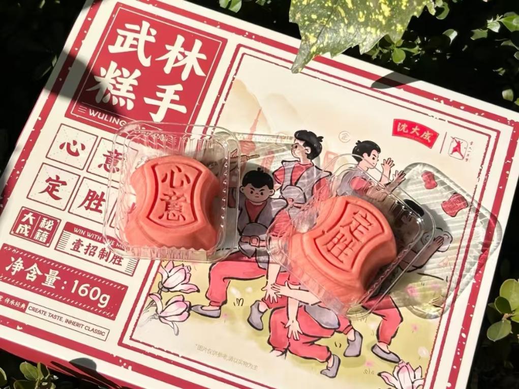 非遺傳承人們也不再滿足于“守住老味道”,更在努力跨界融合、推陳出新。沈大成最新推出的“武林糕手”心意定勝糕,內(nèi)里仍是銀錠造型、香甜軟糯的糕點,外包裝設(shè)計則引入了國家級非遺項目盧氏心意拳的招式形象,受到消費者的歡迎。