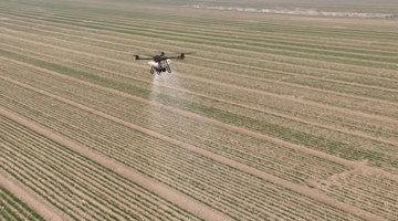 圖為一架正在陜西省渭南市臨渭區(qū)官邸鎮(zhèn)廟王村麥田進(jìn)行作業(yè)的無人機(jī)。(受訪者供圖) 記者從渭南市臨渭區(qū)農(nóng)業(yè)農(nóng)村局了解到,作為陜西重要糧食生產(chǎn)基地,2024年臨渭區(qū)秋播小麥63.5萬畝,由于播期土壤底墑充足,加之降水適期,今年苗情優(yōu)于常年,隨著氣溫回升,麥田春管已全面展開。