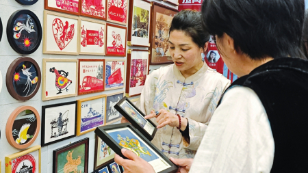 初夏時節(jié),走進山西上林苑傳統(tǒng)剪紙藝術研究所,身著一襲傳統(tǒng)服飾的王銀鳳笑吟吟地講述了她與太原剪紙、與非遺研培的往事,她的身后是內容多樣、色彩豐富的剪紙作品。與剪紙結緣四十余載,王銀鳳剪出了一段充滿堅守與創(chuàng)新的人生故事。