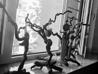 在牛鳴遠(yuǎn)家中的窗臺(tái)上,還擺放著4個(gè)毛筆掛,這些都是他用撿回的樹枝拼接而成的。“你看這個(gè)毛筆掛的底部像只蜥蜴,我給它接了腳,讓底部更穩(wěn)當(dāng),之前的樹枝都是直的,沒有這樣的彎度,我就在火上邊扭邊烤,趁著那股熱勁用涼水一沖,直的樹枝就被扭得有了彎度,更加漂亮了?!迸xQ遠(yuǎn)說(shuō),光毛筆掛他就做了15個(gè),送出去的有11個(gè),現(xiàn)在他親手制作的毛筆掛不止太原有,遠(yuǎn)在四川和沈陽(yáng)的親朋他也給寄了過(guò)去。