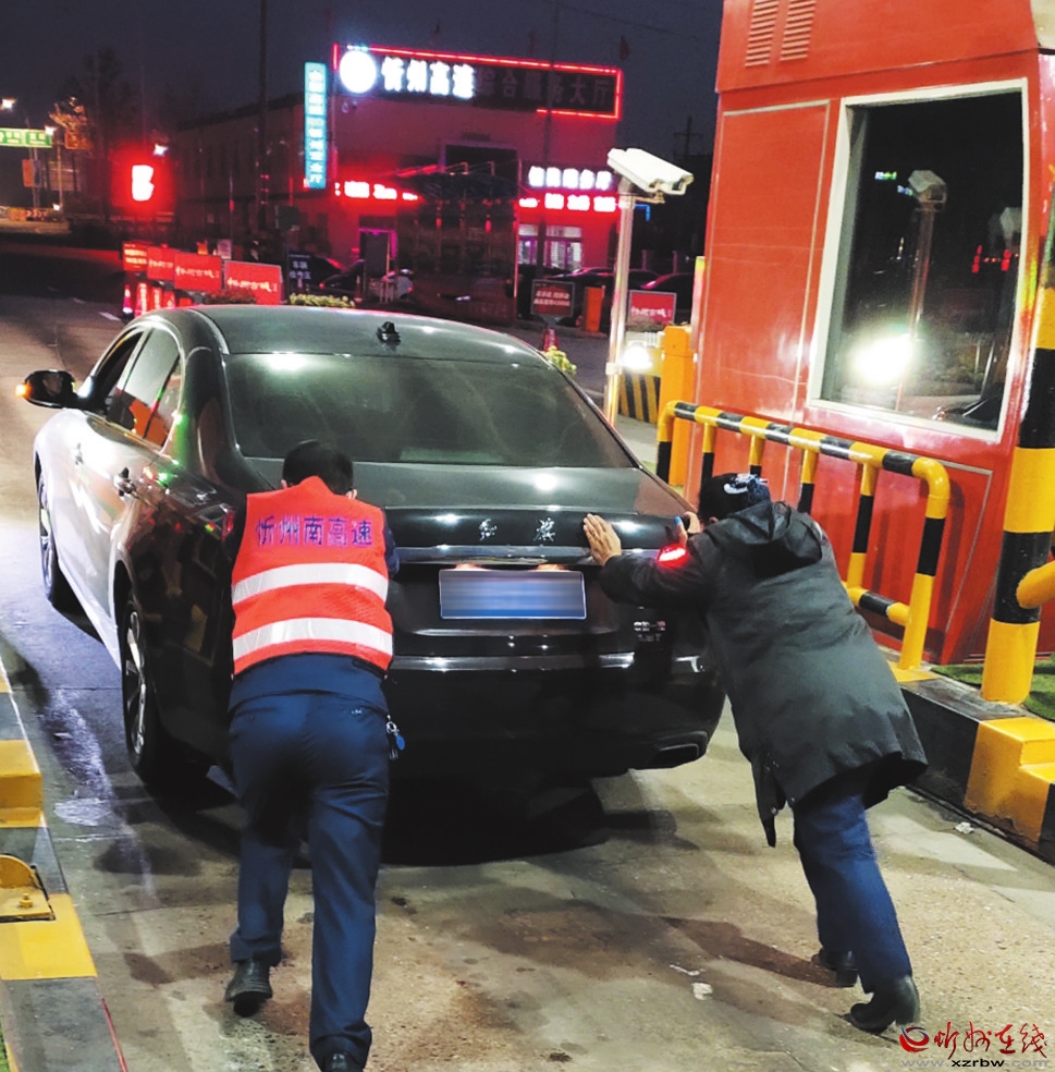 1月3日,南高速忻州收費站出口駛入一輛黑色紅旗小客車,在起步離開時車輛突發(fā)故障無法正常駛出車道。值班班長得知后在安慰司乘人員情緒的同時,立即組織工作人員一起將車推出收費車道停放至安全區(qū)域,并擺放好隔離墩,防止事故發(fā)生,同時積極為司機聯系附近修理廠,安排維修人員前來維修。( 李瑞軍 莊新華 攝影報道)