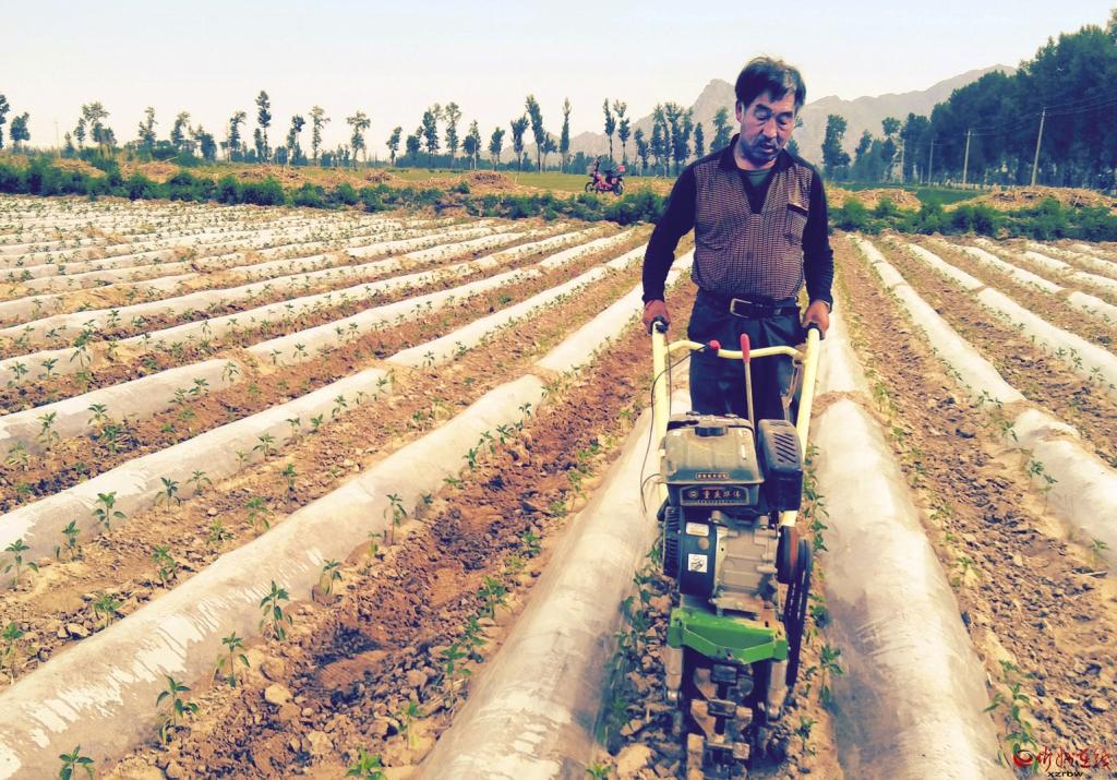 6月1日,在原平市子干村千畝辣椒地里,農(nóng)民正在用小型鋤地機清除雜草。據(jù)了解,定襄縣白村農(nóng)民郭建勇等在子干村承包土地1000畝,種植優(yōu)種辣椒,既幫助村民流轉了土地、增加了收入,又可實現(xiàn)自己的致富夢。 (華 浩 攝)