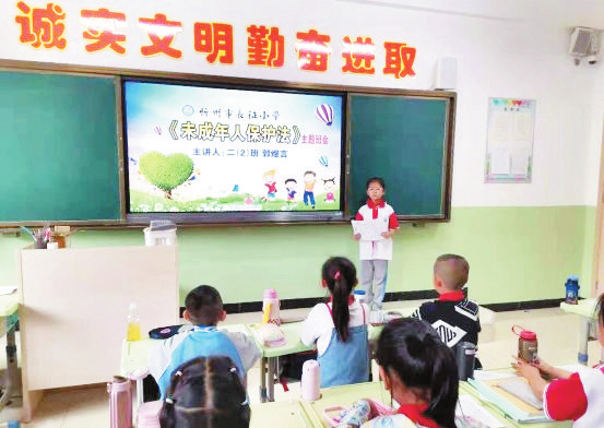 為加強對未成年人的思想道德教育,保護自身合法權(quán)益,增強安全意識,6月11日,忻州市長征小學(xué)組織各班開展了《未成年人保護法》學(xué)習(xí)宣傳教育活動。 (馮偉倫 攝)