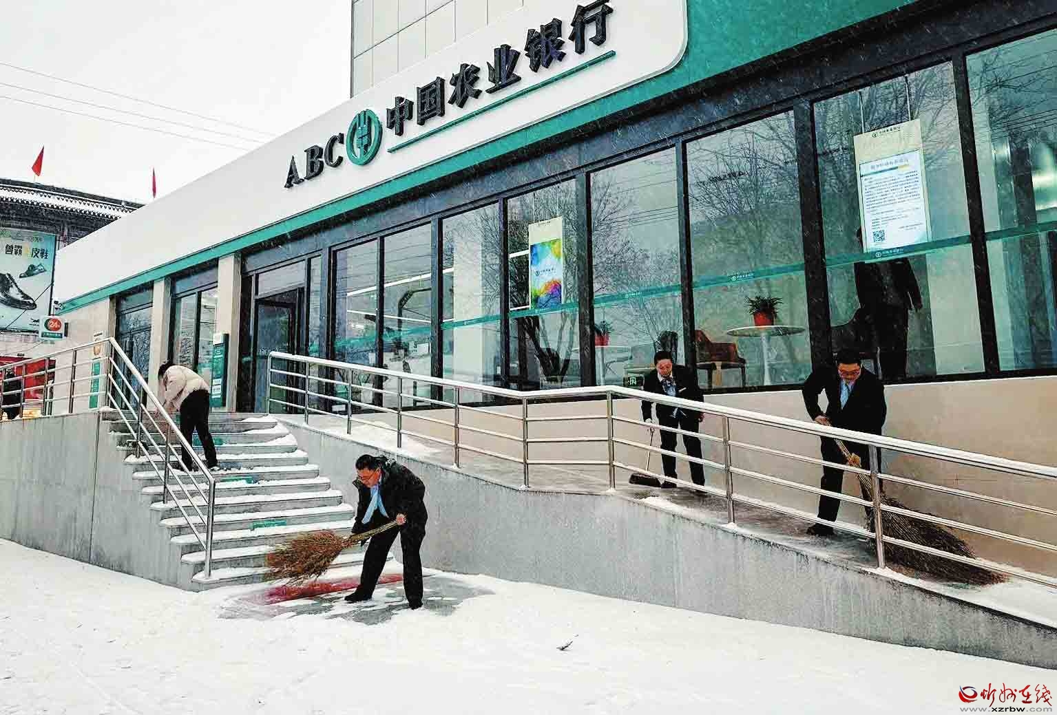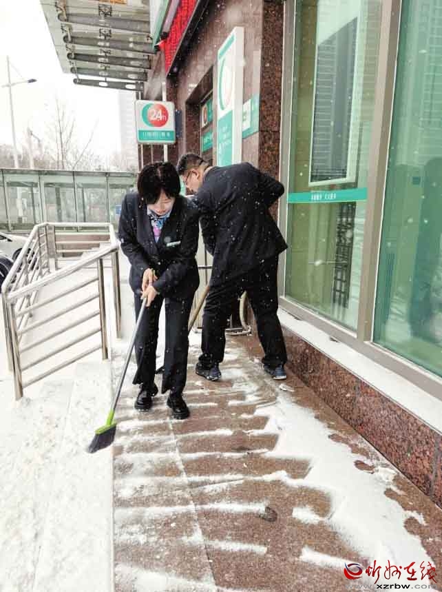 面對我市首場強降雪,農(nóng)行忻州分行員工以雪為令,及時清掃網(wǎng)點及周邊區(qū)域,確保服務(wù)通道暢通無阻,以實際行動傳遞了溫暖的金融服務(wù)。(殷俊攝)
