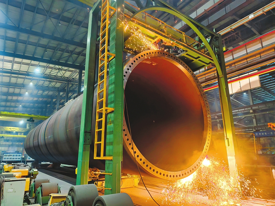 1月19日,在省級(jí)裝配式建筑產(chǎn)業(yè)鏈“鏈核”企業(yè)山西鋼構(gòu)科工有限公司智能制造車間內(nèi),一臺(tái)巨型壓力容器正進(jìn)行焊接作業(yè)。輥道與龍門架穩(wěn)穩(wěn)托舉著數(shù)十米長的鋼構(gòu)件,自動(dòng)化系統(tǒng)實(shí)時(shí)監(jiān)測焊縫質(zhì)量,全力保障昔陽、陽曲、廣靈、屯留等地風(fēng)電項(xiàng)目塔筒制作。 賈曉瑞 王宇攝