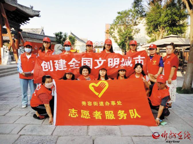 聚是一團火,散是滿天星。一個微笑、一份禮讓、一只援手,都是志愿服務(wù)精神的繽紛綻放。也許,一個人的力量是有限的,但榜樣帶給市民的正能量是無窮的。古城游客紛紛表示,作為忻州人,在創(chuàng)建文明城市過程中,要當(dāng)好文明古城的傳播者,主動傳遞文明新風(fēng),用自身的行動帶動更多的朋友們參與到文明創(chuàng)建中。從我做起,從小事做起,讓志愿服務(wù)在忻州古城久行成風(fēng)、眾行成氣,匯聚文明向上的力量,為文明城市創(chuàng)建精彩代言。圖為秀容辦志愿者服務(wù)隊在忻州古城泰山廟廣場。 (本報記者 王國梁)