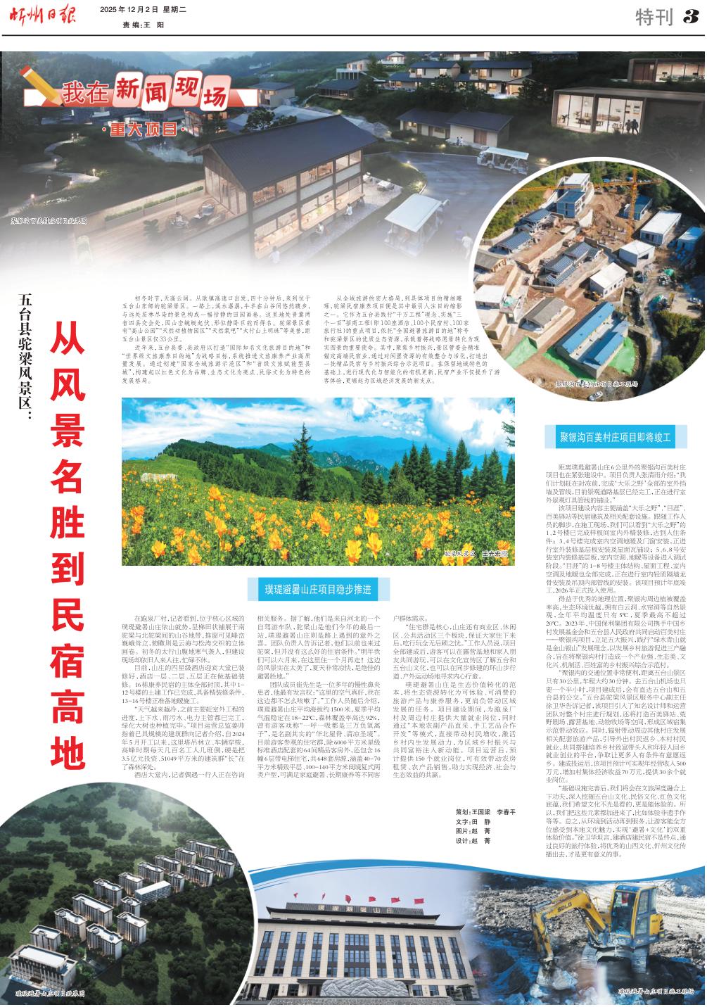 在跑泉廠村,記者看到,位于核心區(qū)域的璞瑅避暑山莊依山就勢(shì),呈梯田狀鋪展于南駝梁與北駝梁間的山谷地帶,推窗可見峰巒巍峨聳立,俯瞰則是云海與松濤交織的立體畫卷。初冬的太行山腹地寒氣襲人,但建設(shè)現(xiàn)場(chǎng)卻依舊人來人往,忙碌不休。