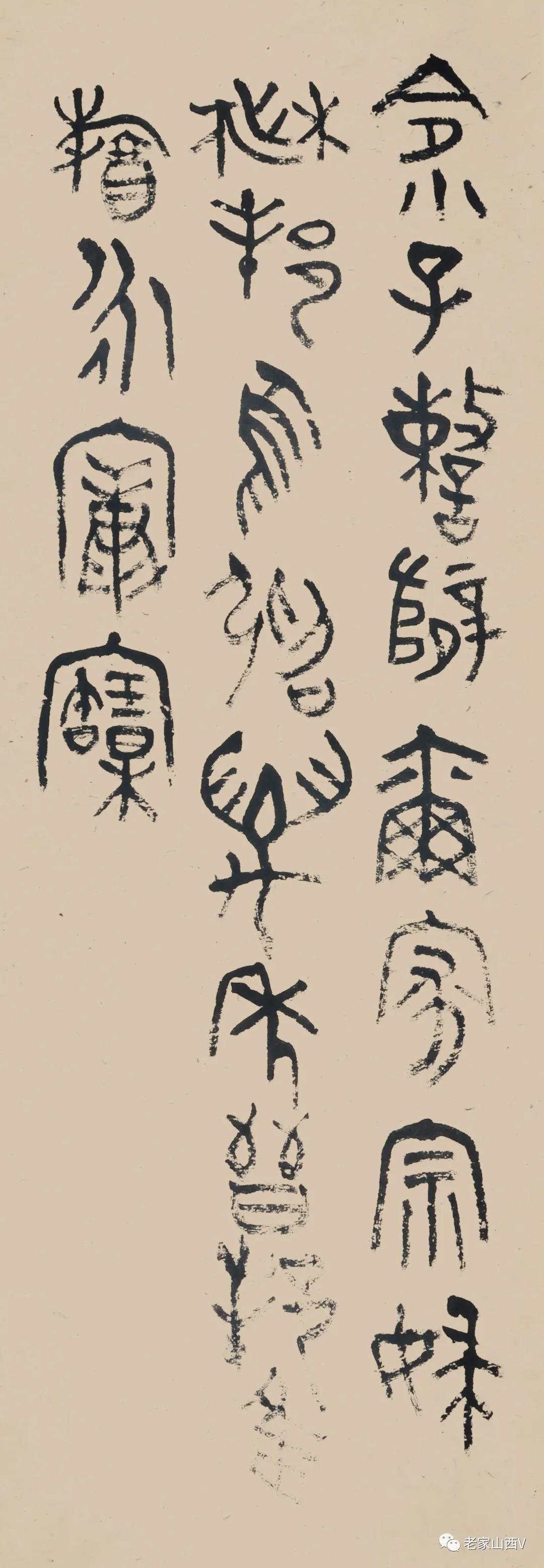 志剛先生因篆悟書(shū),于書(shū)入篆,實(shí)際上就是兼顧了書(shū)寫(xiě)的本質(zhì),找到了體現(xiàn)“漢字”本性的落點(diǎn)。對(duì)于一個(gè)書(shū)法家來(lái)講,除了解決書(shū)法的共性特征外,必須解決自己的個(gè)性特征才能名符其實(shí),否則就很難有較高的成就。因?yàn)椤白钡木C合性和獨(dú)特表現(xiàn)性,正好可以給書(shū)寫(xiě)者提供一種理解書(shū)法特質(zhì)的通道,那就是如何在更為有限的空間里呈現(xiàn)漢字審美的問(wèn)題!在篆里,漢字固定的型,卻可以,而且必須根椐不同的語(yǔ)境有所改變才會(huì)呈現(xiàn)出藝術(shù)魅力。也就是先能“有”,然后再進(jìn)入“無(wú)”,從“有”入“無(wú)”就可以得自由,如果能夠解決這一問(wèn)題,并將之綜合體現(xiàn)在書(shū)法創(chuàng)作中自然就會(huì)有在非同凡響的面貌。