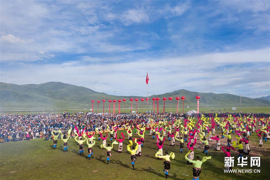 8月6日,當?shù)厝罕娫诒硌菸璧浮睹利惖慕瘃R色達》。8月6日至8日,四川甘孜山地文化旅游節(jié)系列活動之一的色達金馬文化節(jié)在四川省色達縣扎青塘草原舉辦。當?shù)厝罕娚碇?jié)日盛裝載歌載舞、歡聚一堂,文藝表演、賽馬、傳統(tǒng)服飾展演、非遺展示等活動精彩紛呈。 近幾年,當?shù)卣罅ν苿游穆?、農(nóng)旅、牧旅融合發(fā)展,全域旅游豐富多彩,成為當?shù)孛撠毐夹】档闹匾ナ?。新華社記者 江宏景 攝