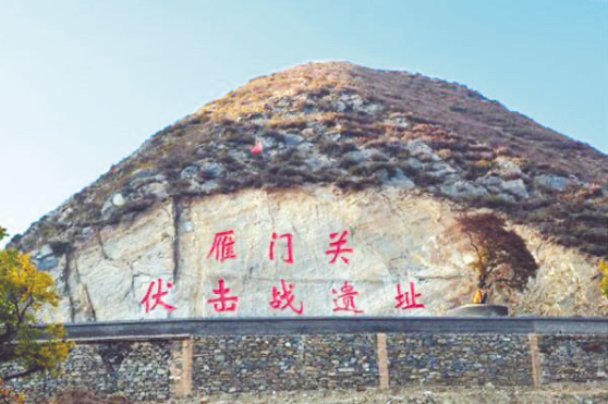 雁門關(guān)伏擊戰(zhàn)遺址就在代縣雁門關(guān)鄉(xiāng)黑石頭溝,南北長1000米,東西寬200米,遺址現(xiàn)留存被炸毀的大橋墩。遠處石壁上銘刻著“雁門關(guān)伏擊戰(zhàn)遺址”八個鮮紅的大字,崖下有塊巨石上面記載著雁門關(guān)伏擊戰(zhàn)中,70位烈士奮勇殺敵、為國犧牲的故事。