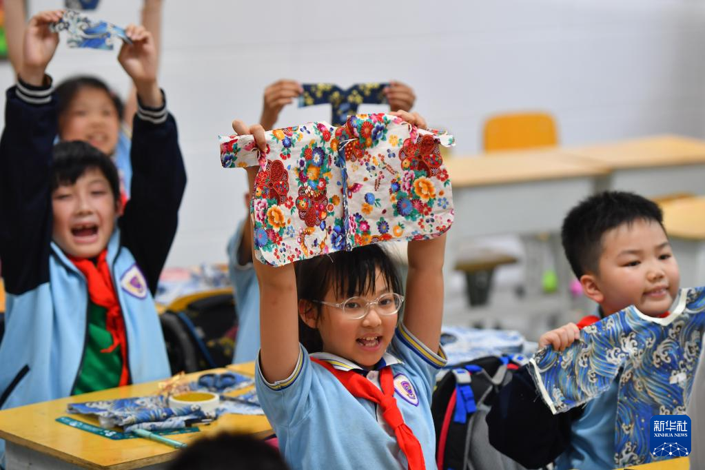 近年來,湖南省長沙市天心區(qū)紅衛(wèi)小學積極落實“雙減”政策,聯合專業(yè)機構設計了豐富的課后服務內容,包含剪紙藝術、手工風箏、傳統(tǒng)服飾設計、趣味臉譜、景泰藍掐絲琺瑯畫、拓印、皮影戲等,讓學生零距離感受非遺,激發(fā)學生對傳統(tǒng)文化的興趣,推動非遺的傳承,助力“雙減”。(新華社記者 陳澤國 攝)