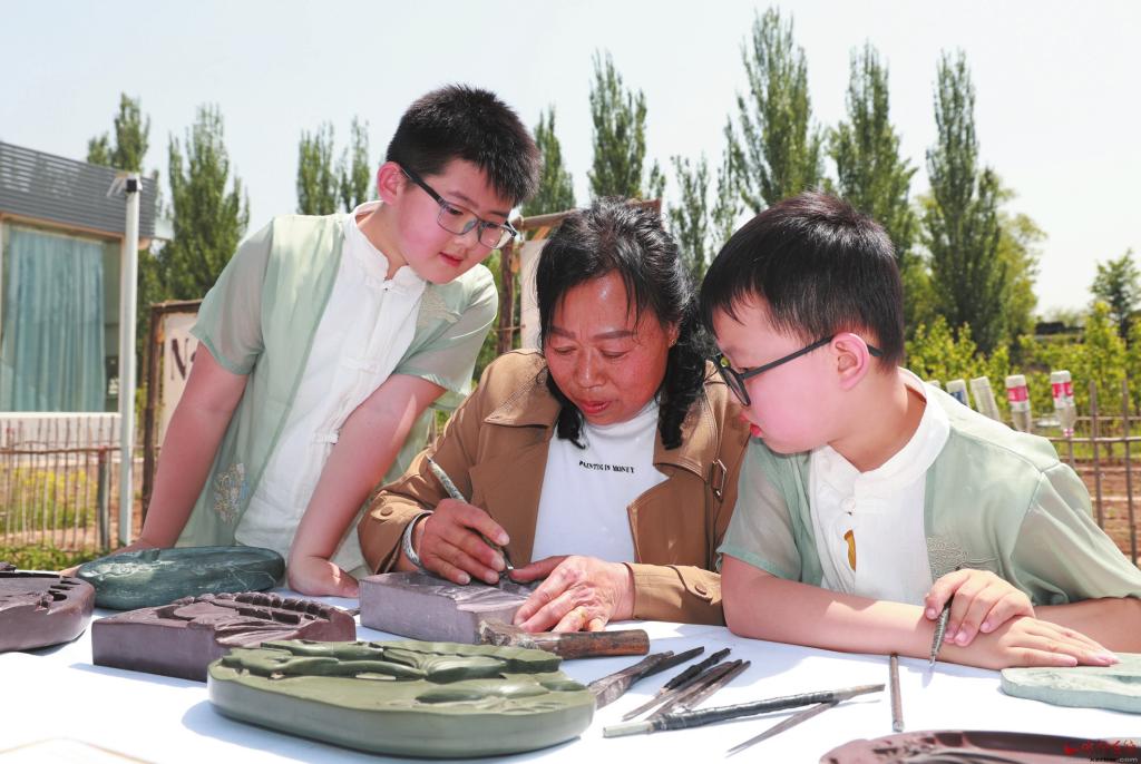 “如果不掌握歷史文化知識(shí),就不會(huì)理解硯臺(tái)雕刻的價(jià)值,這樣的作品是沒(méi)有靈魂的?!痹诔幣_(tái)雕刻展示臺(tái)前,來(lái)自定襄的非遺傳承人正在認(rèn)真講解。身著漢服的學(xué)生刀筆生花,認(rèn)真進(jìn)行雕刻體驗(yàn)。“活動(dòng)讓孩子感受到了手工制作的樂(lè)趣,還學(xué)到了不少非遺文化知識(shí)?!笔忻裢觖愓f(shuō)。