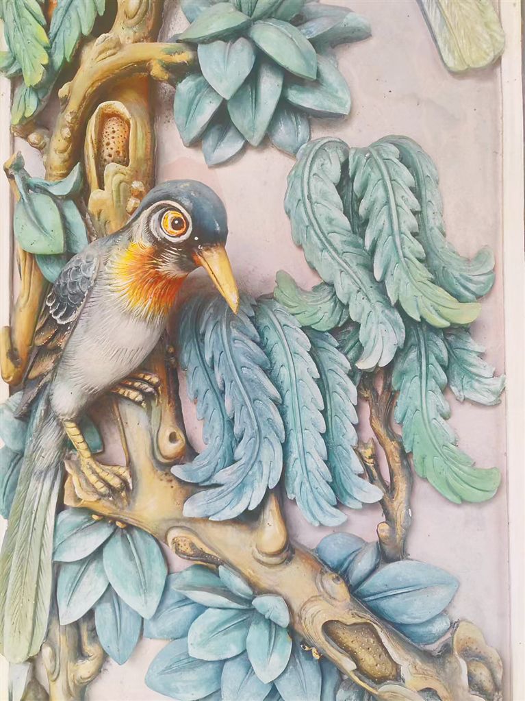 在海南的灰塑作品中,留白的運用同樣有“以無勝有”的視覺效果?!盎宜茏髌飞饰宀拾邤?,一眼看過去容易產(chǎn)生錯亂的感覺,這時候留白就顯得很重要?!卞竞iw酒店負責(zé)人符燕舞說,灰塑作品有明顯的寫實風(fēng)格,所呈現(xiàn)的物象紛繁多彩。如果要將灰塑作為一種藝術(shù)品保留下來,用留白的手法為作品增添美感十分必要。