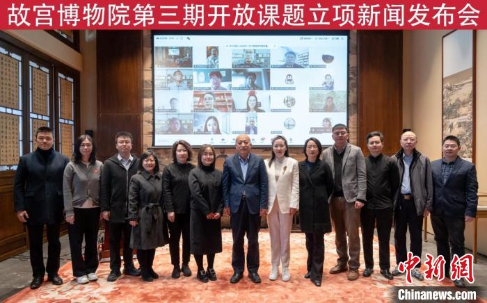 故宮博物院第三期開放課題立項(xiàng)新聞發(fā)布會現(xiàn)場嘉賓合影。 故宮博物院供圖