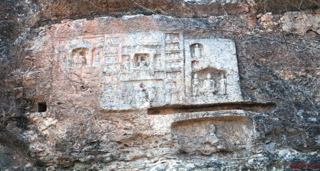 七巖山摩崖造像位于定襄縣南王鄉(xiāng)黃場峪村東南約一千米處,分布于溝兩側(cè)崖壁上?,F(xiàn)存東魏、北齊和唐代摩崖造像及石窟共9處,其中石窟5處,摩崖造像4處,大小佛教造像1200余尊,造像總面積約27平方米。據(jù)《定襄金石考》記載:最早的造像及碑記為北魏神龜二年(519),現(xiàn)無存?,F(xiàn)存最早的摩崖造像及題記為東魏天平三年(536),由僧人慧端等刊刻。另有北齊天保七年(556)廣武令趙郎奴等刊刻的造像及題記,以及唐先天二年(713)造像及題記。石窟主要為佛殿窟和禪窟,造像題材包括七佛、千佛和涅槃像等。