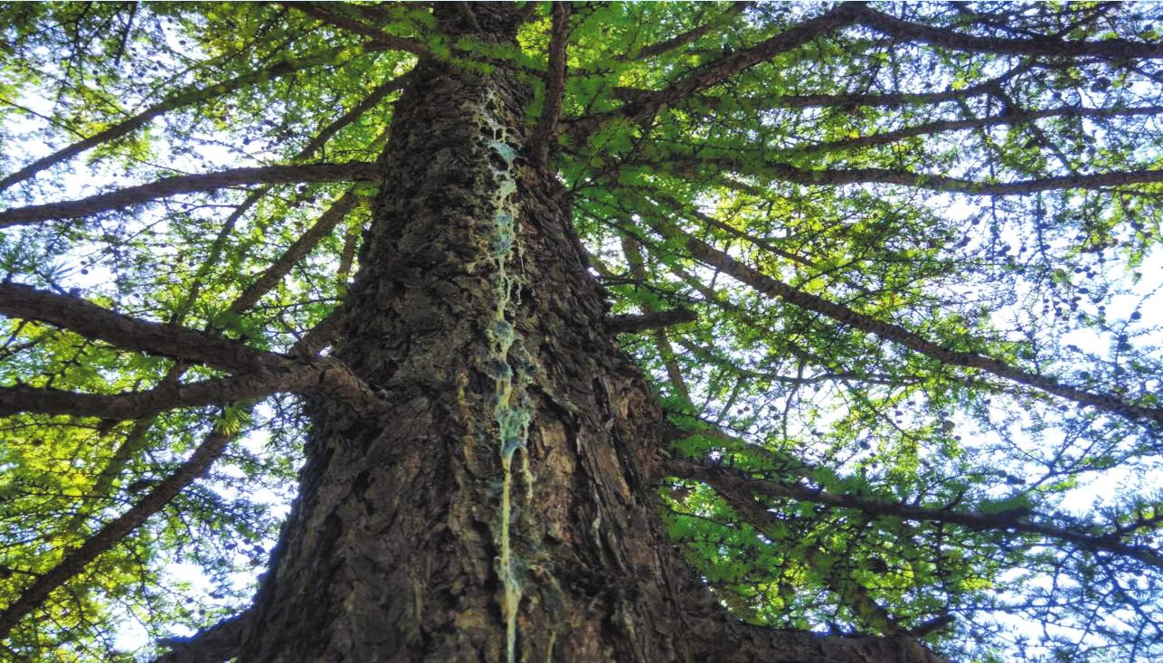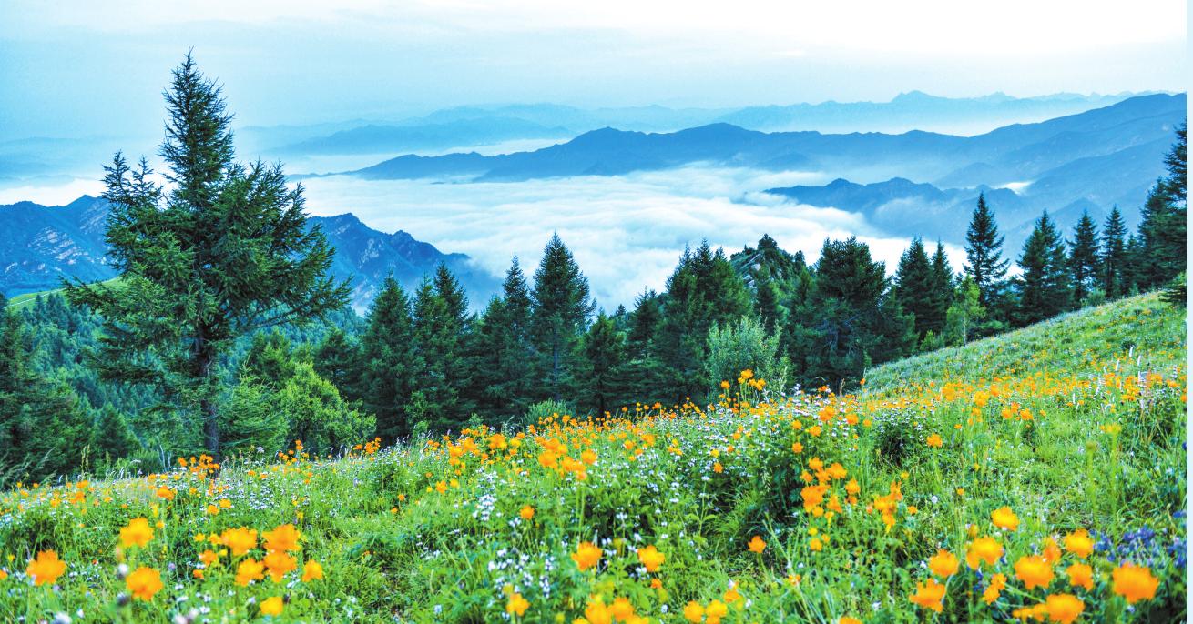 登南梁溝觀景臺(tái),向東眺望,更覺風(fēng)光無限,懸崖峭壁直聳云天,森林遮天蔽日,落葉松主干挺拔,油松橫枝遠(yuǎn)伸,白樺樹枝繁葉茂,儼然一幅濃彩油畫。