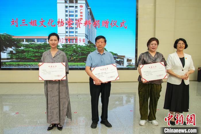 當天活動現(xiàn)場還舉行了劉三姐文化檔案捐贈儀式,柳州《劉三姐》創(chuàng)作組曾昭文、龔邦榕、鄧凡平、牛秀四位作家簽名的創(chuàng)作于1991年的彩調(diào)劇《劉三姐》(第九方案)封筆之作的手稿原件,也由其中的作者曾昭文之子捐贈。另外,廣西戲劇院、“劉三姐”扮演者傅錦華女兒傅彬彬等捐贈了相關(guān)“劉三姐”照片,廣西壯族自治區(qū)檔案館領導為捐贈者們頒發(fā)了收藏證書。