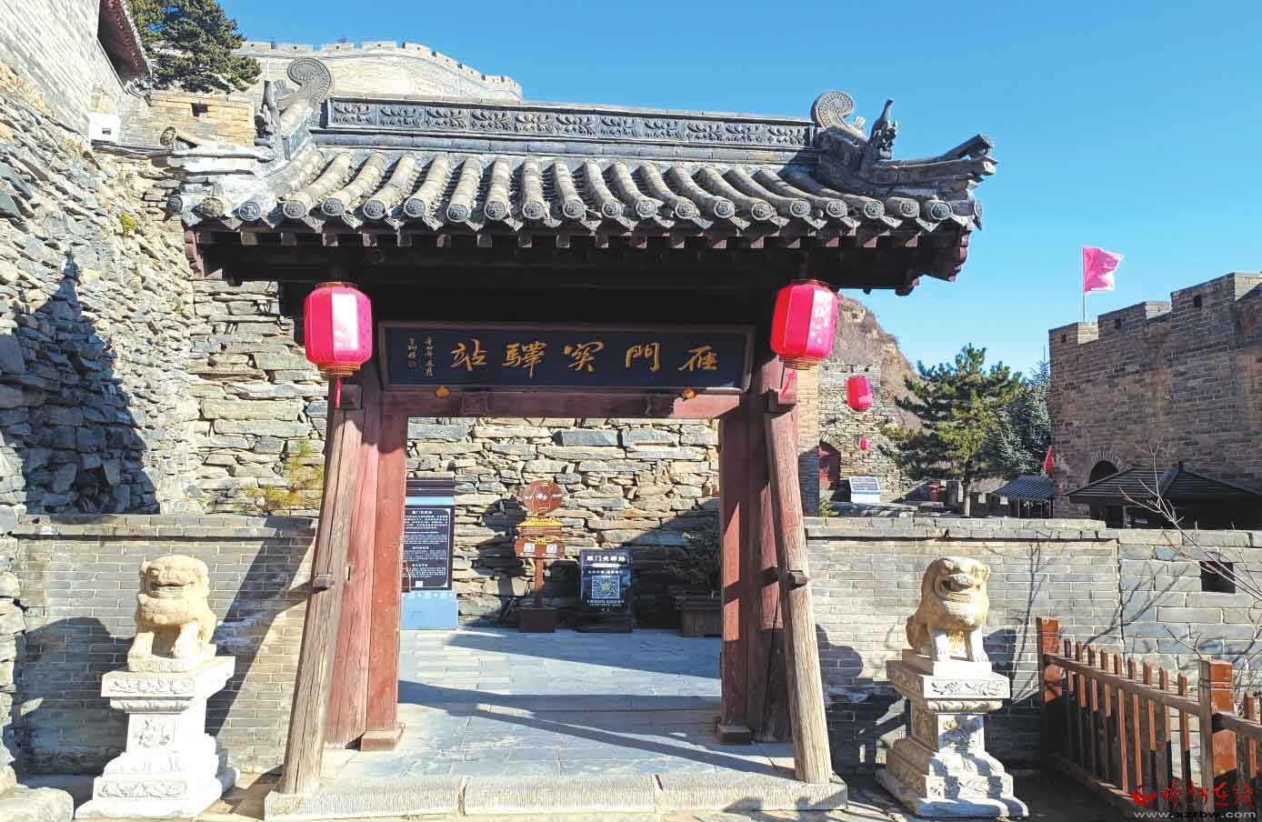 寒風(fēng)凜冽,旗幟飛揚(yáng),城頭大鼓橫列,有人握槌揮擊,鏗鏘激越,聲震山谷。腦海里不由得回想起屠洪剛那句有名的唱詞:“我站在烈烈風(fēng)中,劍在手,問天下誰是英雄?”金戈鐵馬仿佛就在眼前的溝壑閃現(xiàn)。